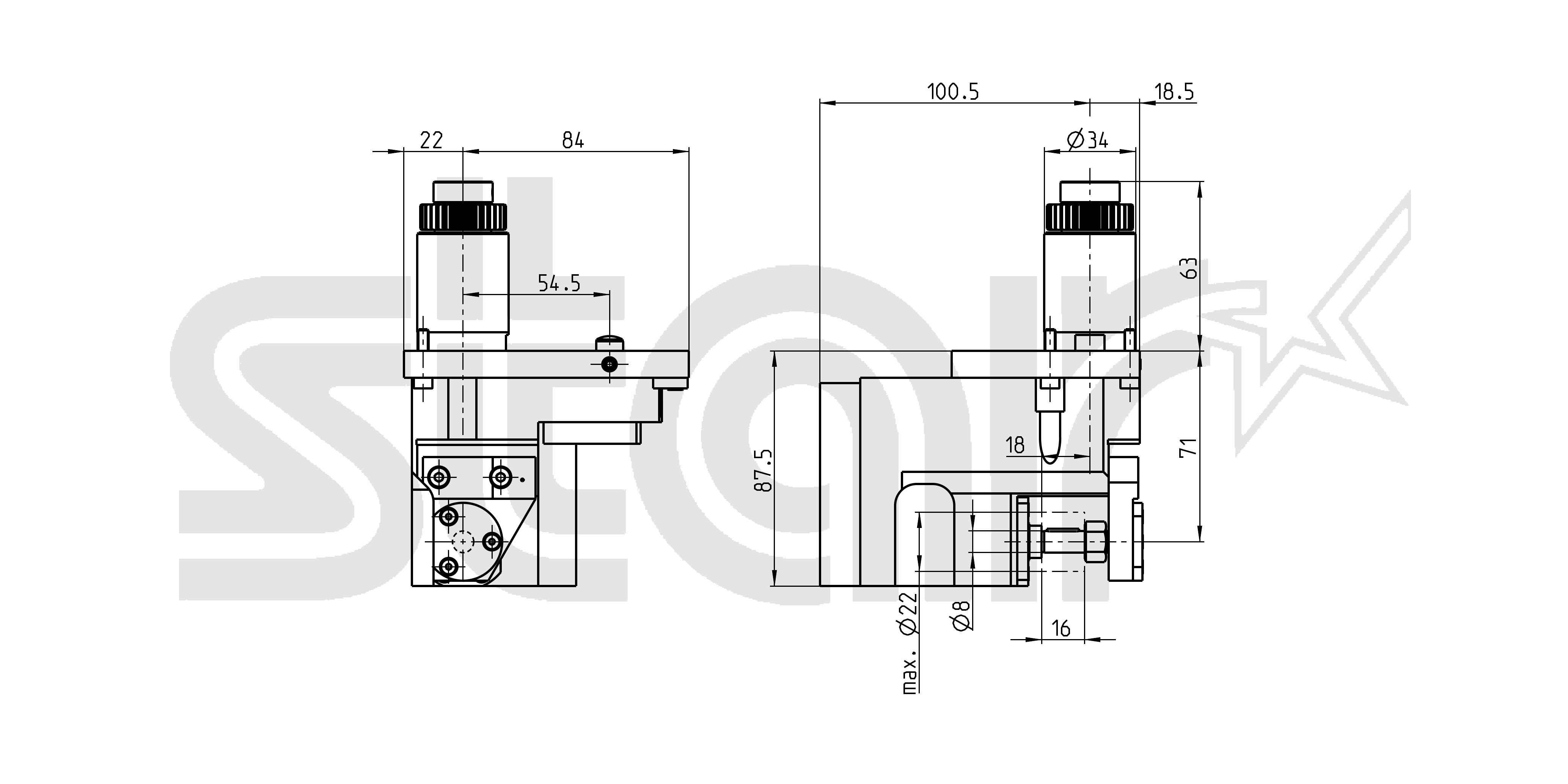 Gear hobbing unit Ø8mm; adjustible ±5°